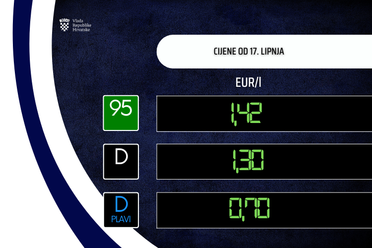 Danas je održana telefonska sjednica Vlade Republike Hrvatske na kojoj je donesena Uredba o utvrđivanju najviših maloprodajnih cijena naftnih derivata sukladno kojoj se najviše maloprodajne cijene računaju po formuli prema osnovnoj cijeni fosilnog goriva u prethodnom 14 dnevnom razdoblju, s ograničenom premijom od 0,1545 EUR/l za dizelsko i benzinsko gorivo, te 0,0781 EUR/l za plavi dizel, a u iznosu 0,8429 EUR/kg smjesa propan - butan za boce, odnosno 0,4116 EUR/kg za velike spremnike.