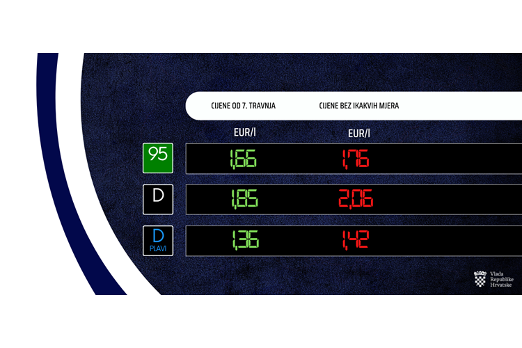 Stoga je Vlada na telefonskoj sjednici donijela Uredbu kojom se nastavlja primjena mjere snižavanja visina trošarina za energente na bezolovni motorni benzin i dizelsko gorivo za daljnje dvotjedno razdoblje od 7. travnja do 20. travnja 2026.