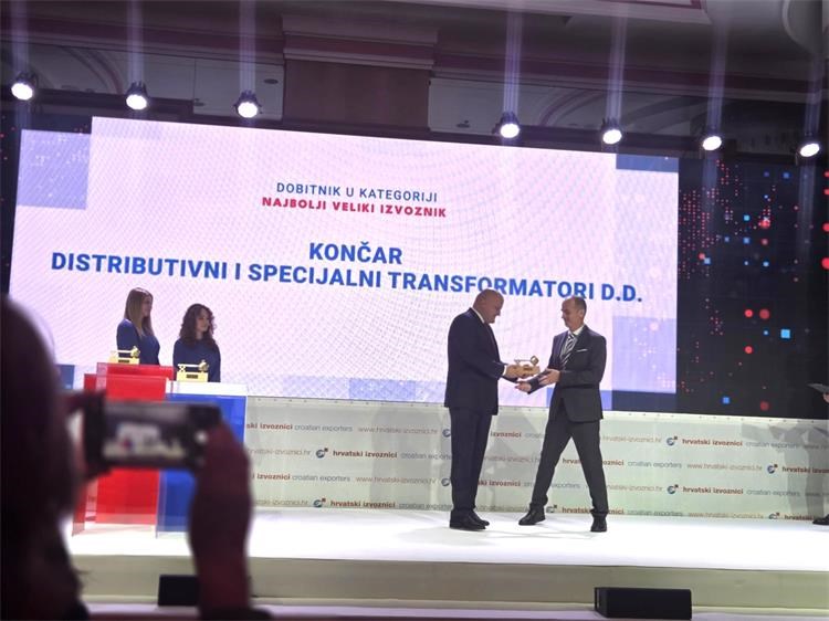 Nagrade Zlatni ključ uručene su najboljim izvoznicima u 2024. godini, a u kategoriji najboljeg velikog izvoznika ministar Šušnjar dodijelio je nagradu tvrtki Končar distributivni i specijalni transformatori d.d.