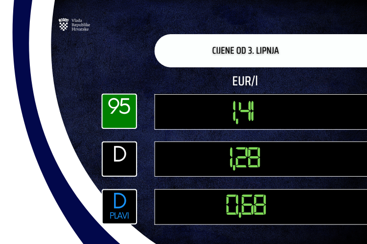 Danas je održana telefonska sjednica Vlade Republike Hrvatske na kojoj je donesena Uredba o utvrđivanju najviših maloprodajnih cijena naftnih derivata sukladno kojoj se najviše maloprodajne cijene računaju po formuli prema osnovnoj cijeni fosilnog goriva u prethodnom 14 dnevnom razdoblju, s ograničenom premijom od 0,1545 EUR/l za dizelsko i benzinsko gorivo, te 0,0781 EUR/l za plavi dizel, a u iznosu 0,8429 EUR/kg smjesa propan - butan za boce, odnosno 0,4116 EUR/kg za velike spremnike.